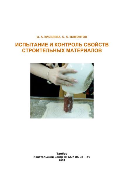 Киселева, О. А. Испытание и контроль свойств строительных материалов : учебное пособие / О. А. Киселева, С. А. Мамонтов. — Тамбов : Тамбовский государственный технический университет, ЭБС АСВ, 2024. — 97 c. — ISBN 978-5-8265-2781-8. — Текст : электронный // Цифровой образовательный ресурс IPR SMART : [сайт]. — URL: https://www.iprbookshop.ru/145328.html (дата обращения: 08.11.2024). — Режим доступа: для авторизир. пользователей