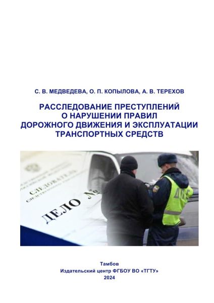 Медведева, С. В. Расследование преступлений о нарушении правил дорожного движения и эксплуатации транспортных средств : учебное пособие / С. В. Медведева, О. П. Копылова, А. В. Терехов. — Тамбов : Тамбовский государственный технический университет, ЭБС АСВ, 2024. — 80 c. — ISBN 978-5-8265-2772-6. — Текст : электронный // Цифровой образовательный ресурс IPR SMART : [сайт]. — URL: https://www.iprbookshop.ru/145341.html (дата обращения: 08.11.2024). — Режим доступа: для авторизир. пользователей