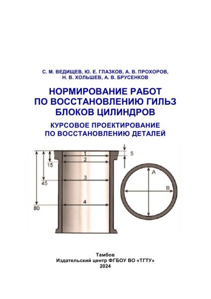 Нормирование работ по восстановлению гильз блоков цилиндров. Курсовое проектирование по восстановлению деталей : учебное пособие / С. М. Ведищев, Ю. Е. Глазков, А. В. Прохоров [и др.]. — Тамбов : Тамбовский государственный технический университет, ЭБС АСВ, 2024. — 153 c. — ISBN 978-5-8265-2789-4. — Текст : электронный // Цифровой образовательный ресурс IPR SMART : [сайт]. — URL: https://www.iprbookshop.ru/145351.html (дата обращения: 08.11.2024). — Режим доступа: для авторизир. пользователей