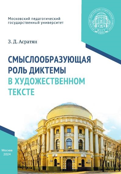 Асратян, З. Д. Смыслообразующая роль диктемы в художественном тексте : монография / З. Д. Асратян. — 2-е изд. — Москва : Московский педагогический государственный университет, 2024. — 274 c. — ISBN 978-5-4263-0935-7. — Текст : электронный // Цифровой образовательный ресурс IPR SMART : [сайт]. — URL: https://www.iprbookshop.ru/145426.html (дата обращения: 13.11.2024). — Режим доступа: для авторизир. пользователей