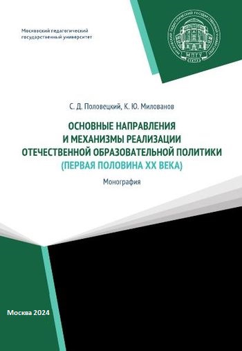 Половецкий, С. Д. Основные направления и механизмы реализации отечественной образовательной политики (первая половина ХХ века) : монография / С. Д. Половецкий, К. Ю. Милованов. — 2-е изд. — Москва : Московский педагогический государственный университет, 2024. — 160 c. — ISBN 978-5-4263-1032-2. — Текст : электронный // Цифровой образовательный ресурс IPR SMART : [сайт]. — URL: https://www.iprbookshop.ru/145441.html (дата обращения: 18.11.2024). — Режим доступа: для авторизир. пользователей