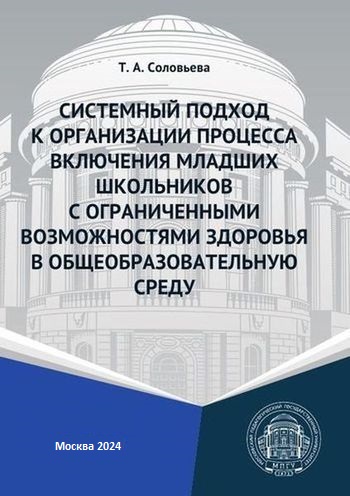 Соловьева, Т. А. Системный подход к организации процесса включения младших школьников с ограниченными возможностями здоровья в общеобразовательную среду : монография / Т. А. Соловьева. — 2-е изд. — Москва : Московский педагогический государственный университет, 2024. — 160 c. — ISBN 978-5-4263-0705-6. — Текст : электронный // Цифровой образовательный ресурс IPR SMART : [сайт]. — URL: https://www.iprbookshop.ru/145459.html (дата обращения: 18.11.2024). — Режим доступа: для авторизир. пользователей
