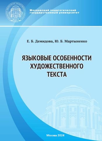 Демидова, Е. Б. Языковые особенности художественного текста : учебное пособие / Е. Б. Демидова, Ю. Б. Мартыненко. — 2-е изд. — Москва : Московский педагогический государственный университет, 2024. — 200 c. — ISBN 978-5-4263-0815-2. — Текст : электронный // Цифровой образовательный ресурс IPR SMART : [сайт]. — URL: https://www.iprbookshop.ru/145484.html (дата обращения: 18.11.2024). — Режим доступа: для авторизир. пользователей