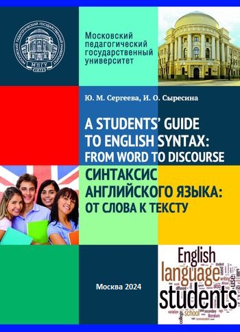 Сергеева, Ю. М. Синтаксис английского языка: от слова к тексту = A Students’ Guide to English Syntax: from Word to Discourse : учебное пособие / Ю. М. Сергеева, И. О. Сыресина. — 2-е изд. — Москва : Московский педагогический государственный университет, 2024. — 204 c. — ISBN 978-5-4263-0650-9. — Текст : электронный // Цифровой образовательный ресурс IPR SMART : [сайт]. — URL: https://www.iprbookshop.ru/145498.html (дата обращения: 18.11.2024). — Режим доступа: для авторизир. пользователей