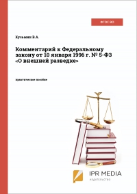 Кузьмин, В. А. Комментарий к Федеральному закону от 10 января 1996 г. № 5-ФЗ «О внешней разведке» / В. А. Кузьмин. — Саратов : Ай Пи Эр Медиа, 2010. — 174 c. — Текст : электронный // Цифровой образовательный ресурс IPR SMART : [сайт]. — URL: https://www.iprbookshop.ru/1455.html (дата обращения: 01.08.2025). — Режим доступа: для авторизир. пользователей