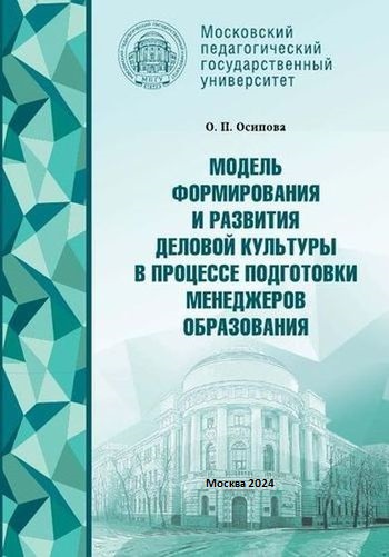 Осипова, О. П. Модель формирования и развития деловой культуры в процессе подготовки менеджеров образования : монография / О. П. Осипова. — 2-е изд. — Москва : Московский педагогический государственный университет, 2024. — 128 c. — ISBN 978-5-4263-0588-5. — Текст : электронный // Цифровой образовательный ресурс IPR SMART : [сайт]. — URL: https://www.iprbookshop.ru/145512.html (дата обращения: 18.11.2024). — Режим доступа: для авторизир. пользователей