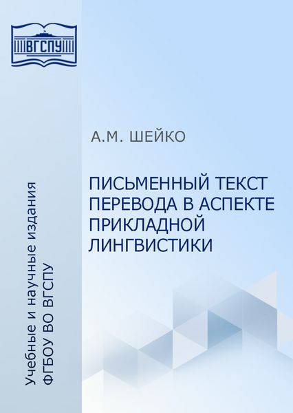 Шейко А.М. Письменный текст перевода в аспекте прикладной лингвистики : учебное пособие / Шейко А.М.. — Волгоград : Волгоградский государственный социально-педагогический университет, «Перемена», 2024. — 82 c. — ISBN 978-5-9935-0465-0. — Текст : электронный // Цифровой образовательный ресурс IPR SMART : [сайт]. — URL: https://www.iprbookshop.ru/145643.html (дата обращения: 19.12.2025). — Режим доступа: для авторизир. пользователей