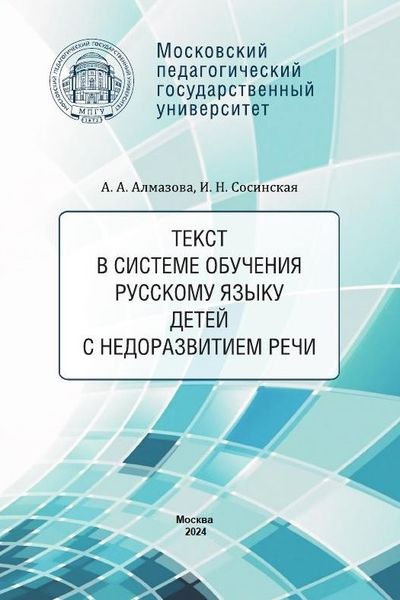 Алмазова, А. А. Текст в системе обучения русскому языку детей с недоразвитием речи : учебное пособие для студентов, обучающихся по направлению «Специальное (дефектологическое) образование» / А. А. Алмазова, И. Н. Сосинская. — 2-е изд. — Москва : Московский педагогический государственный университет, 2024. — 76 c. — ISBN 978-5-4263-0441-3. — Текст : электронный // Цифровой образовательный ресурс IPR SMART : [сайт]. — URL: https://www.iprbookshop.ru/145693.html (дата обращения: 26.11.2024). — Режим доступа: для авторизир. пользователей