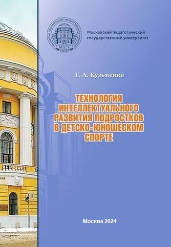 Кузьменко, Г. А. Технология интеллектуального развития подростков в детско-юношеском спорте : монография / Г. А. Кузьменко. — 2-е изд. — Москва : Московский педагогический государственный университет, 2024. — 460 c. — ISBN 978-5-4263-0526-7. — Текст : электронный // Цифровой образовательный ресурс IPR SMART : [сайт]. — URL: https://www.iprbookshop.ru/145732.html (дата обращения: 26.11.2024). — Режим доступа: для авторизир. пользователей