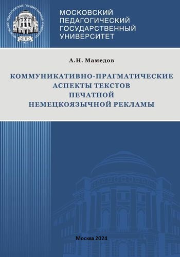 Мамедов, А. Н. Коммуникативно-прагматические аспекты текстов печатной немецкоязычной рекламы : монография / А. Н. Мамедов. — 2-е изд. — Москва : Московский педагогический государственный университет, 2024. — 108 c. — ISBN 978-5-4263-0278-5. — Текст : электронный // Цифровой образовательный ресурс IPR SMART : [сайт]. — URL: https://www.iprbookshop.ru/145774.html (дата обращения: 26.11.2024). — Режим доступа: для авторизир. пользователей
