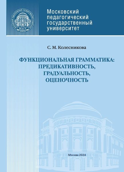 Колесникова, С. М. Функциональная грамматика: предикативность, градуальность, оценочность : учебное пособие / С. М. Колесникова. — 2-е изд. — Москва : Московский педагогический государственный университет, 2024. — 288 c. — ISBN 978-5-4263-0231-0. — Текст : электронный // Цифровой образовательный ресурс IPR SMART : [сайт]. — URL: https://www.iprbookshop.ru/145819.html (дата обращения: 26.11.2024). — Режим доступа: для авторизир. пользователей