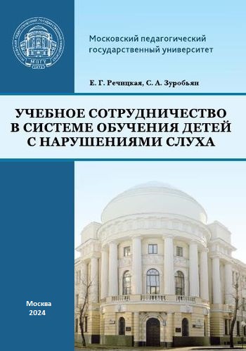Речицкая, Е. Г. Учебное сотрудничество в системе обучения детей с нарушениями слуха : учебно-методическое пособие / Е. Г. Речицкая, С. А. Зуробьян. — 2-е изд. — Москва : Московский педагогический государственный университет, 2024. — 192 c. — ISBN 978-5-4263-0551-9. — Текст : электронный // Цифровой образовательный ресурс IPR SMART : [сайт]. — URL: https://www.iprbookshop.ru/145845.html (дата обращения: 26.11.2024). — Режим доступа: для авторизир. пользователей
