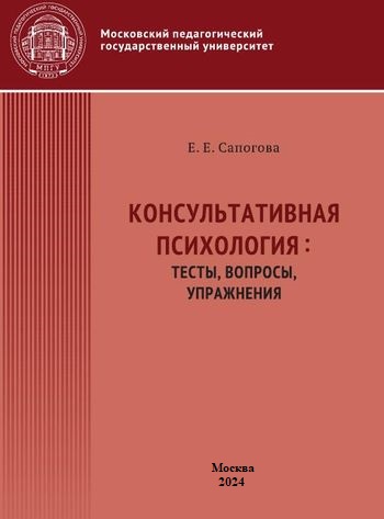 Сапогова, Е. Е. Консультативная психология: тесты, вопросы, упражнения : учебное пособие / Е. Е. Сапогова. — 2-е изд. — Москва : Московский педагогический государственный университет, 2024. — 308 c. — ISBN 978-5-4263-0818-3. — Текст : электронный // Цифровой образовательный ресурс IPR SMART : [сайт]. — URL: https://www.iprbookshop.ru/146089.html (дата обращения: 01.12.2024). — Режим доступа: для авторизир. пользователей
