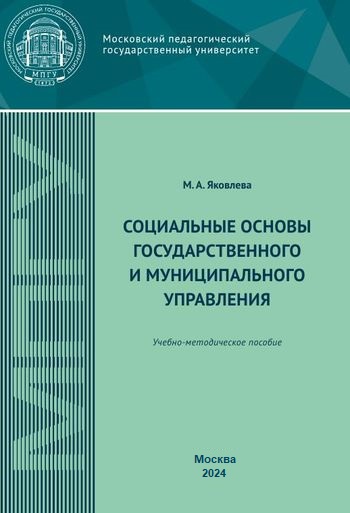 Яковлева, М. А. Социальные основы государственного и муниципального управления : учебно-методическое пособие / М. А. Яковлева. — 2-е изд. — Москва : Московский педагогический государственный университет, 2024. — 72 c. — ISBN 978-5-4263-0830-5. — Текст : электронный // Цифровой образовательный ресурс IPR SMART : [сайт]. — URL: https://www.iprbookshop.ru/146103.html (дата обращения: 01.12.2024). — Режим доступа: для авторизир. пользователей