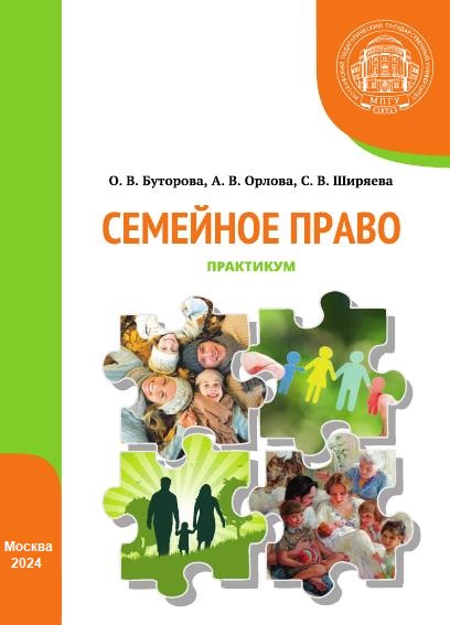 Буторова, О. В. Семейное право : практикум / О. В. Буторова, А. В. Орлова, С. В. Ширяева. — 2-е изд. — Москва : Московский педагогический государственный университет, 2024. — 252 c. — ISBN 978-5-4263-0904-3. — Текст : электронный // Цифровой образовательный ресурс IPR SMART : [сайт]. — URL: https://www.iprbookshop.ru/146242.html (дата обращения: 05.12.2024). — Режим доступа: для авторизир. пользователей