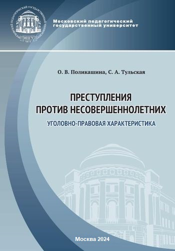 Поликашина, О. В. Преступления против несовершеннолетних: уголовно-правовая характеристика : учебное пособие / О. В. Поликашина, С. А. Тульская. — 2-е изд. — Москва : Московский педагогический государственный университет, 2024. — 100 c. — ISBN 978-5-4263-0774-2. — Текст : электронный // Цифровой образовательный ресурс IPR SMART : [сайт]. — URL: https://www.iprbookshop.ru/146257.html (дата обращения: 06.12.2024). — Режим доступа: для авторизир. пользователей
