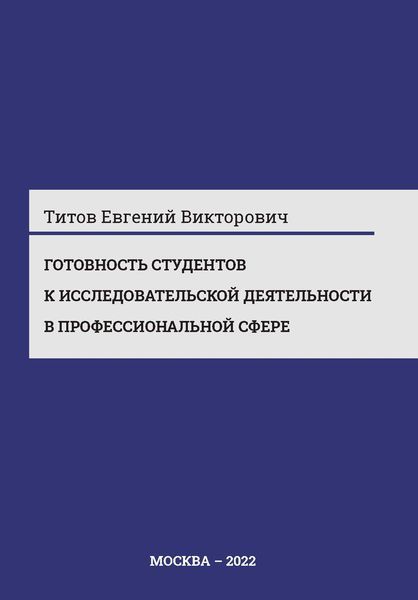 Титов Е.В. Готовность студентов к исследовательской деятельности в профессиональной сфере : монография / Титов Е.В.. — Москва : Научный консультант, 2022. — 72 c. — ISBN 978-5-907477-60-5. — Текст : электронный // Цифровой образовательный ресурс IPR SMART : [сайт]. — URL: https://www.iprbookshop.ru/146667.html (дата обращения: 06.12.2025). — Режим доступа: для авторизир. пользователей