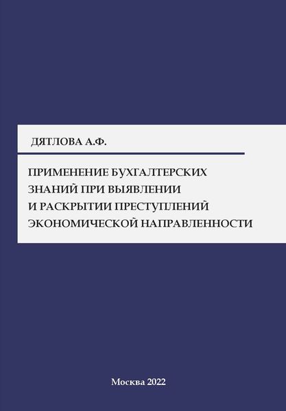 Дятлова, А. Ф. Применение бухгалтерских знаний при выявлении и раскрытии преступлений экономической направленности : монография / А. Ф. Дятлова. — Москва : Научный консультант, 2022. — 294 c. — ISBN 978-5-907477-44-5. — Текст : электронный // Цифровой образовательный ресурс IPR SMART : [сайт]. — URL: https://www.iprbookshop.ru/146689.html (дата обращения: 19.12.2024). — Режим доступа: для авторизир. пользователей
