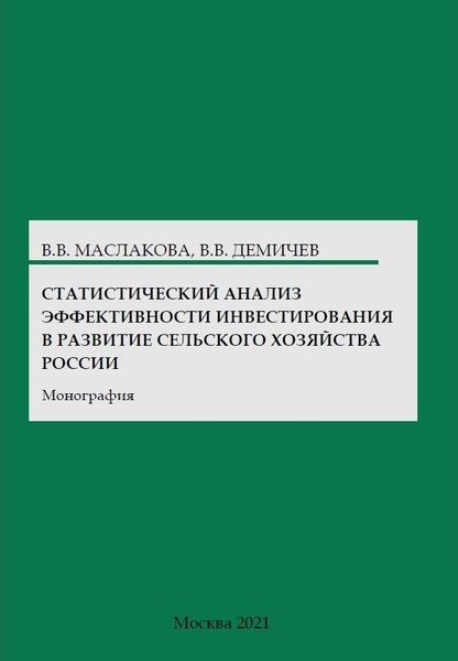 Маслакова, В. В. Статистический анализ эффективности инвестирования в развитие сельского хозяйства России : монография / В. В. Маслакова, В. В. Демичев. — Москва : Научный консультант, 2021. — 194 c. — ISBN 978-5-907477-08-7. — Текст : электронный // Цифровой образовательный ресурс IPR SMART : [сайт]. — URL: https://www.iprbookshop.ru/146700.html (дата обращения: 19.12.2024). — Режим доступа: для авторизир. пользователей
