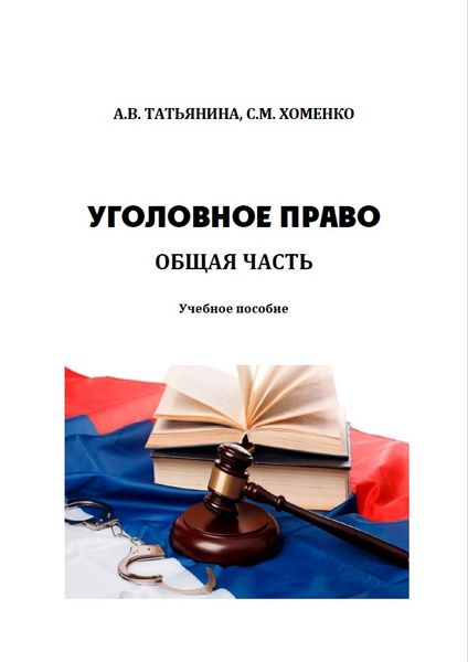 Татьянина, А. В. Уголовное право. Общая часть : учебное пособие / А. В. Татьянина, С. М. Хоменко. — Таганрог : Таганрогский институт управления и экономики, 2024. — 156 c. — ISBN 978-5-9201-0170-9. — Текст : электронный // Цифровой образовательный ресурс IPR SMART : [сайт]. — URL: https://www.iprbookshop.ru/146888.html (дата обращения: 23.12.2024). — Режим доступа: для авторизир. пользователей