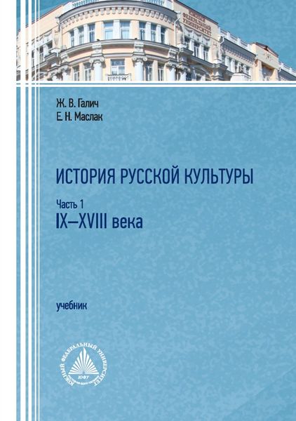 Галич Ж.В. История русской культуры. В 2 частях. Ч.1. IX–XVIII века : учебник / Галич Ж.В., Маслак Е.Н.. — Ростов-на-Дону, Таганрог : Издательство Южного федерального университета, 2024. — 192 c. — ISBN 978-5-9275-4656-5, 978-5-9275-4657-2 (ч.1). — Текст : электронный // Цифровой образовательный ресурс IPR SMART : [сайт]. — URL: https://www.iprbookshop.ru/146897.html (дата обращения: 20.12.2025). — Режим доступа: для авторизир. пользователей