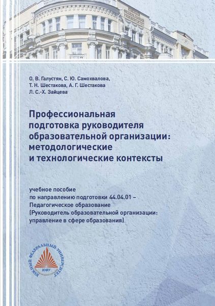 Учебное пособие посвящено профессиональной подготовке руководителя образовательной организации, в котором рассматриваются методологические и технологические контексты. Данное пособие направлено на подготовку высококвалифицированных специалистов в области управления образованием, обладающих спектром компетенций, позволяющих на высоком профессиональном уровне руководить образовательными организациями, интеграционными образовательными комплексами и проектами. Предназначено для обучающихся высшей школы направления подготовки 44.04.01. Педагогическое образование (Руководитель образовательной организации: управление в сфере образования), а также преподавателей, администрации высших учебных заведений.