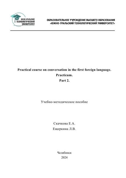 Скачкова, Е. А. Practical course on conversation in the first foreign language. Practicum. P.2 : учебно-методическое пособие / Е. А. Скачкова, Л. В. Ещеркина. — Челябинск : Южно-Уральский технологический университет, 2024. — 43 c. — ISBN 978-5-6051964-6-4. — Текст : электронный // Цифровой образовательный ресурс IPR SMART : [сайт]. — URL: https://www.iprbookshop.ru/147026.html (дата обращения: 27.12.2024). — Режим доступа: для авторизир. пользователей