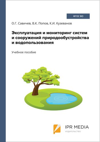 Савичев, О. Г. Эксплуатация и мониторинг систем и сооружений природообустройства и водопользования : учебное пособие / О. Г. Савичев, В. К. Попов, К. И. Кузеванов. — 2-е изд. — Москва : Ай Пи Ар Медиа, 2024. — 215 c. — ISBN 978-5-4497-1275-2. — Текст : электронный // Цифровой образовательный ресурс IPR SMART : [сайт]. — URL: https://www.iprbookshop.ru/147316.html (дата обращения: 13.01.2025). — Режим доступа: для авторизир. пользователей