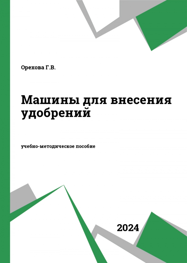 Орехова Г.В. Машины для внесения удобрений : учебно-методическое пособие по дисциплине «Механизация растениеводства» / Орехова Г.В.. — Брянск : Брянский государственный аграрный университет, 2024. — 72 c. — Текст : электронный // Цифровой образовательный ресурс IPR SMART : [сайт]. — URL: https://www.iprbookshop.ru/147627.html (дата обращения: 15.12.2025). — Режим доступа: для авторизир. пользователей