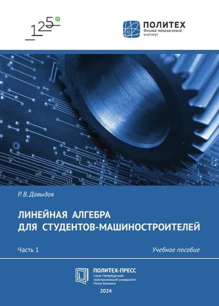 Давыдов, Р. В. Линейная алгебра для студентов-машиностроителей. В 2 частях. Ч.1 : учебное пособие / Р. В. Давыдов. — Санкт-Петербург : Санкт-Петербургский политехнический университет Петра Великого, 2024. — 88 c. — ISBN 978-5-7422-8676-9 (ч.1), 978-5-7422-8675-2. — Текст : электронный // Цифровой образовательный ресурс IPR SMART : [сайт]. — URL: https://www.iprbookshop.ru/147720.html (дата обращения: 05.02.2025). — Режим доступа: для авторизир. пользователей
