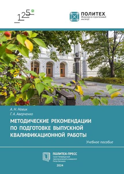 Новик А.Н. Методические рекомендации по подготовке выпускной квалификационной работы : учебное пособие / Новик А.Н., Аверченко Г.А.. — Санкт-Петербург : Санкт-Петербургский политехнический университет Петра Великого, 2024. — 57 c. — ISBN 978-5-7422-8714-8. — Текст : электронный // Цифровой образовательный ресурс IPR SMART : [сайт]. — URL: https://www.iprbookshop.ru/147722.html (дата обращения: 28.12.2025). — Режим доступа: для авторизир. пользователей