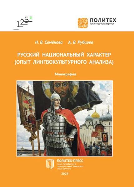 Семёнова Н.В. Русский национальный характер (опыт лингвокультурного анализа) : монография / Семёнова Н.В., Рубцова А.В.. — Санкт-Петербург : Санкт-Петербургский политехнический университет Петра Великого, 2024. — 123 c. — ISBN 978-5-7422-8626-4. — Текст : электронный // Цифровой образовательный ресурс IPR SMART : [сайт]. — URL: https://www.iprbookshop.ru/147734.html (дата обращения: 05.12.2025). — Режим доступа: для авторизир. пользователей