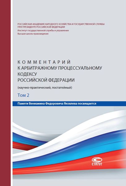 Комментарий к Арбитражному процессуальному кодексу Российской Федерации (научно-практический, постатейный): памяти Вениамина Федоровича Яковлева посвящается. В 2 томах. Т.2. Разделы II–VII / А. А. Алексеева, Т. К. Андреева, С. Ф. Афанасьев [и др.] ; под редакцией Т. К. Андреевой [и др.]. — 2-е изд. — Москва : Статут, 2022. — 934 c. — ISBN 978-5-8354-1878-7, 978-5-8354-1880-0 (т.2). — Текст : электронный // Цифровой образовательный ресурс IPR SMART : [сайт]. — URL: https://www.iprbookshop.ru/147781.html (дата обращения: 05.02.2025). — Режим доступа: для авторизир. пользователей