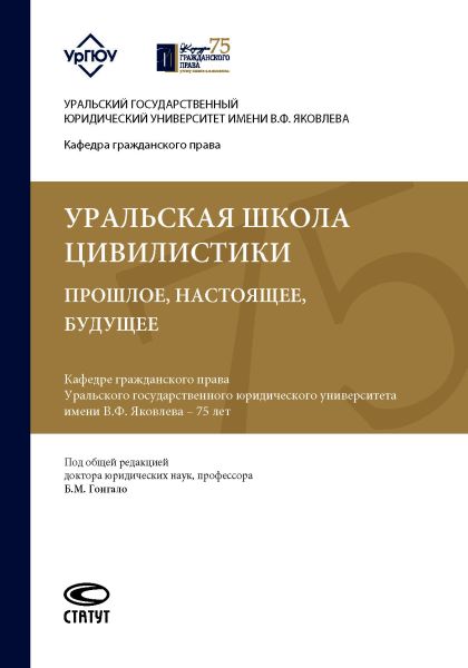 Гонгало, Б. М. Уральская школа цивилистики: прошлое, настоящее, будущее: кафедре гражданского права Уральского государственного юридического университета имени В. Ф. Яковлева – 75 лет / Б. М. Гонгало, Д. В. Братусь ; под редакцией Б. М. Гонгало. — Москва : Статут, 2024. — 407 c. — ISBN 978-5-8354-1974-6. — Текст : электронный // Цифровой образовательный ресурс IPR SMART : [сайт]. — URL: https://www.iprbookshop.ru/147856.html (дата обращения: 06.02.2025). — Режим доступа: для авторизир. пользователей
