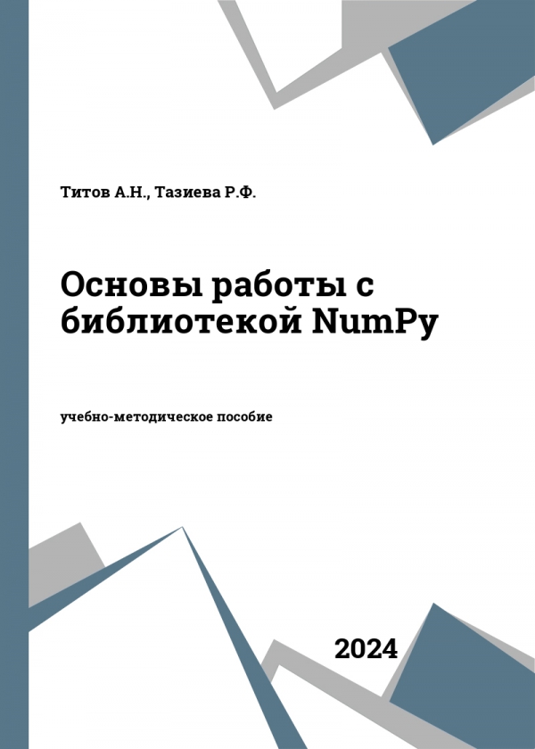 Титов А.Н. Основы работы с библиотекой NumPy : учебно-методическое пособие / Титов А.Н., Тазиева Р.Ф.. — Казань : Издательство КНИТУ, 2024. — 112 c. — ISBN 978-5-7882-3470-0. — Текст : электронный // Цифровой образовательный ресурс IPR SMART : [сайт]. — URL: https://www.iprbookshop.ru/147895.html (дата обращения: 17.12.2025). — Режим доступа: для авторизир. пользователей