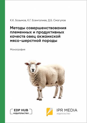 Бозымов, К. К. Методы совершенствования племенных и продуктивных качеств овец акжаикской мясо-шерстной породы : монография / К. К. Бозымов, К. Г. Есенгалиев, Д. Б. Смагулов ; под редакцией Е. Г. Насамбаева. — Алматы, Москва : EDP Hub (Идипи Хаб), Ай Пи Ар Медиа, 2025. — 434 c. — ISBN 978-5-4497-4123-3. — Текст : электронный // Цифровой образовательный ресурс IPR SMART : [сайт]. — URL: https://www.iprbookshop.ru/148118.html (дата обращения: 03.04.2025). — Режим доступа: для авторизир. пользователей