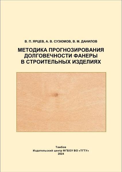 Ярцев, В. П. Методика прогнозирования долговечности фанеры в строительных изделиях : монография / В. П. Ярцев, А. В. Сузюмов, В. М. Данилов. — Тамбов : Тамбовский государственный технический университет, ЭБС АСВ, 2024. — 160 c. — ISBN 978-5-8265-2823-5. — Текст : электронный // Цифровой образовательный ресурс IPR SMART : [сайт]. — URL: https://www.iprbookshop.ru/148480.html (дата обращения: 27.02.2025). — Режим доступа: для авторизир. пользователей