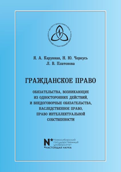 Карунная, Я. А. Гражданское право. Обязательства, возникающие из односторонних действий, и внедоговорные обязательства, наследственное право, право интеллектуальной собственности : практикум для студентов бакалавриата / Я. А. Карунная, Н. Ю. Чернусь, Л. В. Платонова. — Новосибирск : Новосибирский государственный университет, 2024. — 55 c. — ISBN 978-5-4437-1684-8. — Текст : электронный // Цифровой образовательный ресурс IPR SMART : [сайт]. — URL: https://www.iprbookshop.ru/148517.html (дата обращения: 27.02.2025). — Режим доступа: для авторизир. пользователей