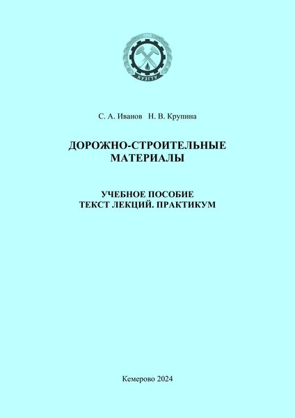 Иванов С.А. Дорожно-строительные материалы. Учебное пособие. Текст лекций. Практикум : учебное пособие для обучающихся по направлению подготовки 08.03.01 «Строительство», направленность (профиль) 04 «Автомобильные дороги» / Иванов С.А., Крупина Н.В.. — Кемерово : Кузбасский государственный технический университет имени Т.Ф. Горбачева, 2024. — 117 c. — ISBN 978-5-00137-462-6. — Текст : электронный // Цифровой образовательный ресурс IPR SMART : [сайт]. — URL: https://www.iprbookshop.ru/148659.html (дата обращения: 20.12.2025). — Режим доступа: для авторизир. пользователей
