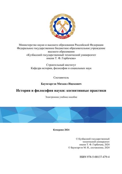 История и философия науки: когнитивные практики : учебное пособие для аспирантов и соискателей всех направлений и специальностей всех форм обучения / составители М. И. Баумгартэн. — Кемерово : Кузбасский государственный технический университет имени Т.Ф. Горбачева, 2024. — 170 c. — ISBN 978-5-00137-479-4. — Текст : электронный // Цифровой образовательный ресурс IPR SMART : [сайт]. — URL: https://www.iprbookshop.ru/148660.html (дата обращения: 04.03.2025). — Режим доступа: для авторизир. пользователей