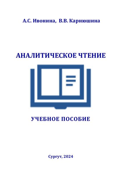 Ивонина, А. С. Аналитическое чтение : учебное пособие / А. С. Ивонина, В. В. Карнюшина. — Сургут : Сургутский государственный педагогический университет, 2024. — 104 c. — Текст : электронный // Цифровой образовательный ресурс IPR SMART : [сайт]. — URL: https://www.iprbookshop.ru/148700.html (дата обращения: 10.03.2025). — Режим доступа: для авторизир. пользователей