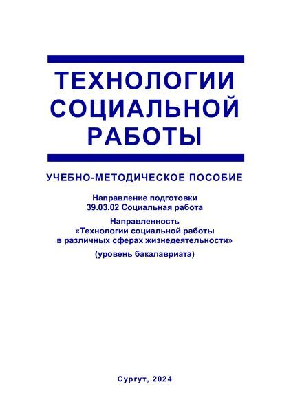 Технологии социальной работы. Учебно-методическое пособие: направление подготовки 39.03.02 Социальная работа, направленность «Технологии социальной работы в различных сферах жизнедеятельности», (уровень бакалавриата)