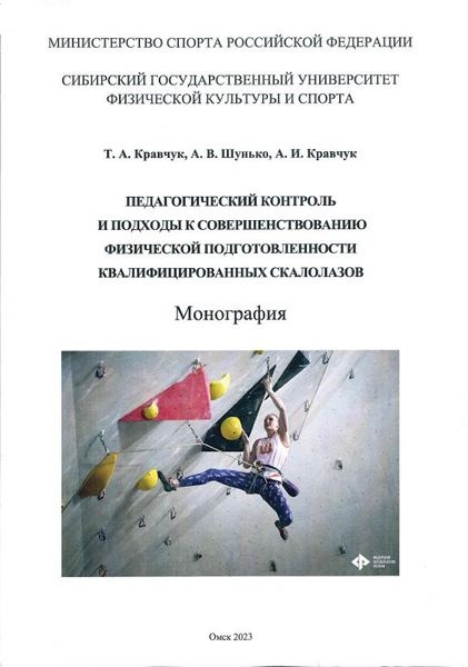 Кравчук, Т. А. Педагогический контроль и подходы к совершенствованию физической подготовленности квалифицированных скалолазов : монография / Т. А. Кравчук, А. В. Шунько, А. И. Кравчук. — Омск : Сибирский государственный университет физической культуры и спорта, 2023. — 238 c. — ISBN 978-5-91930-234-6. — Текст : электронный // Цифровой образовательный ресурс IPR SMART : [сайт]. — URL: https://www.iprbookshop.ru/148727.html (дата обращения: 10.03.2025). — Режим доступа: для авторизир. пользователей
