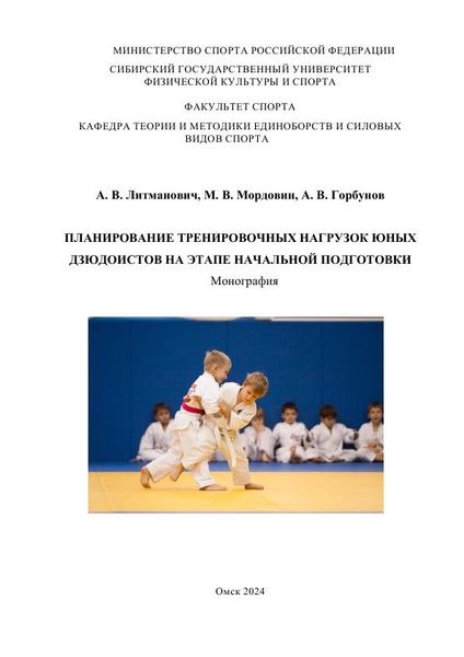 Литманович, А. В. Планирование тренировочных нагрузок юных дзюдоистов на этапе начальной подготовки : монография / А. В. Литманович, М. В. Мордовин, А. В. Горбунов. — Омск : Сибирский государственный университет физической культуры и спорта, 2024. — 172 c. — ISBN 978-5-91930-241-4. — Текст : электронный // Цифровой образовательный ресурс IPR SMART : [сайт]. — URL: https://www.iprbookshop.ru/148728.html (дата обращения: 10.03.2025). — Режим доступа: для авторизир. пользователей