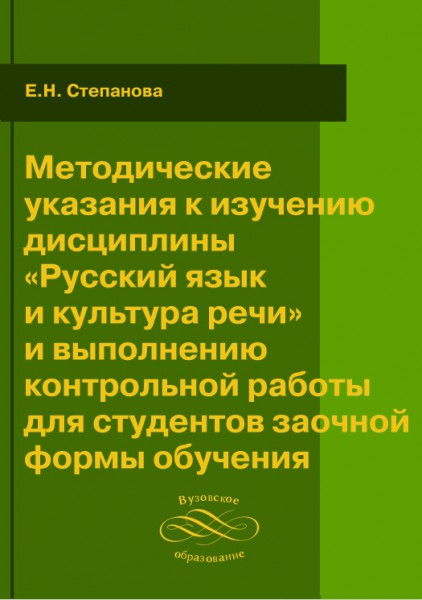 Методические указания к изучению дисциплины «Русский язык и культура речи» и выполнению контрольной работы для студентов заочной формы обучения / составители Е. Н. Степанова. — Самара : РЕАВИЗ, 2010. — 72 c. — Текст : электронный // Цифровой образовательный ресурс IPR SMART : [сайт]. — URL: https://www.iprbookshop.ru/14896.html (дата обращения: 26.04.2022). — Режим доступа: для авторизир. пользователей