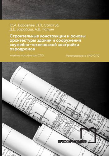 Строительные конструкции и основы архитектуры зданий и сооружений служебно-технической застройки аэродромов : учебное пособие для СПО / Ю. А. Боровлев, Л. П. Салогуб, Д. Е. Барабаш, А. В. Полуян. — Саратов : Профобразование, 2025. — 241 c. — ISBN 978-5-4488-2440-1. — Текст : электронный // Цифровой образовательный ресурс IPR SMART : [сайт]. — URL: https://www.iprbookshop.ru/149372.html (дата обращения: 25.03.2025). — Режим доступа: для авторизир. пользователей