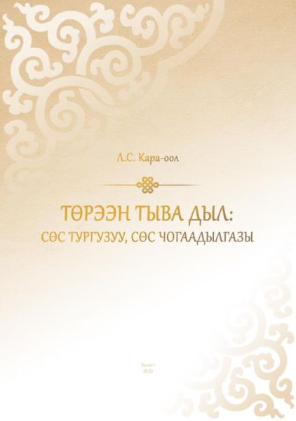Кара-оол, Л. С. Төрээн тыва дыл: сөс тургузуу, сөс чогаадылгазы : өөредилге-методиктиг ном / Л. С. Кара-оол. — Кызыл : Издательство Тувинского государственного университета, 2023. — 91 c. — Текст : электронный // Цифровой образовательный ресурс IPR SMART : [сайт]. — URL: https://www.iprbookshop.ru/149492.html (дата обращения: 27.03.2025). — Режим доступа: для авторизир. пользователей