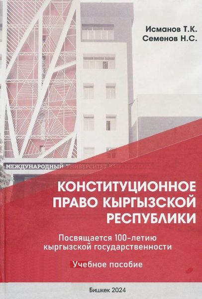 Исманов, Т. К. Конституционное право Кыргызской Республики : учебник для студентов юридических вузов / Т. К. Исманов, Н. С. Семенов ; под редакцией Т. К. Исманова, Н. С. Семенова. — Бишкек : Алтын Принт, 2024. — 538 c. — ISBN 978-9967-462-96-0. — Текст : электронный // Цифровой образовательный ресурс IPR SMART : [сайт]. — URL: https://www.iprbookshop.ru/149767.html (дата обращения: 04.04.2025). — Режим доступа: для авторизир. пользователей