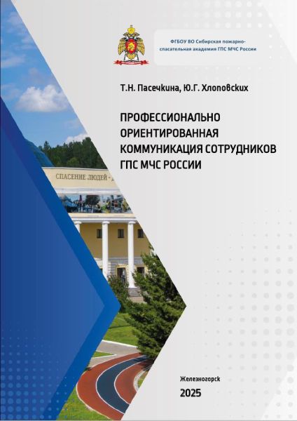 Пасечкина, Т. Н. Профессионально ориентированная коммуникация сотрудников ГПС МЧС России : учебное пособие для обучающихся образовательные организации высшего образования пожарно-технического профиля / Т. Н. Пасечкина, Ю. Г. Хлоповских. — Железногорск : Сибирская пожарно-спасательная академия ГПС МЧС России, 2025. — 135 c. — Текст : электронный // Цифровой образовательный ресурс IPR SMART : [сайт]. — URL: https://www.iprbookshop.ru/149783.html (дата обращения: 04.04.2025). — Режим доступа: для авторизир. пользователей