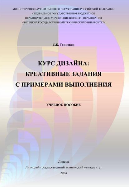 Тонковид, С. Б. Курс дизайна: креативные задания с примерами выполнения : учебное пособие / С. Б. Тонковид. — Липецк : Липецкий государственный технический университет, ЭБС АСВ, 2024. — 99 c. — ISBN 978-5-00175-306-3. — Текст : электронный // Цифровой образовательный ресурс IPR SMART : [сайт]. — URL: https://www.iprbookshop.ru/149840.html (дата обращения: 07.04.2025). — Режим доступа: для авторизир. пользователей